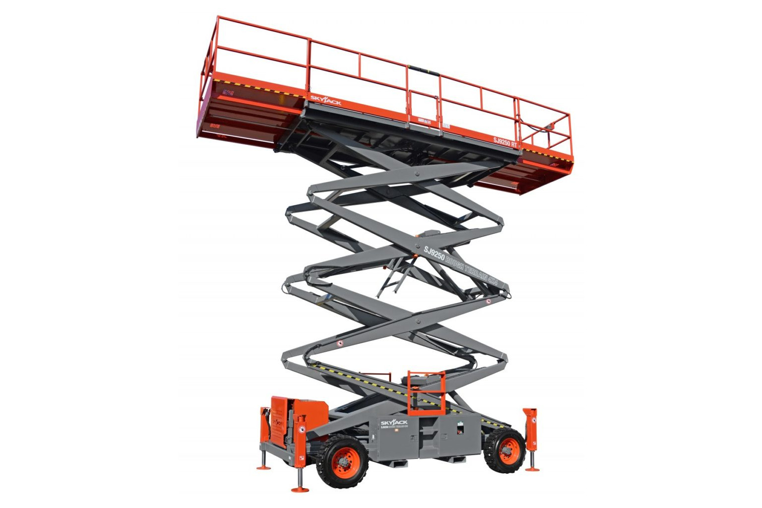 Die Skyjack SJ9250RT ist die größte Diesel-Scherenhebebühne von Skyjack mit einer Arbeitshöhe von 17,1 m. Sie verfügt über zwei 1,5m lange, elektrisch verstellbare Plattformverlängerungen und bietet somit eine riesige Arbeitsplattform von 7,3m.